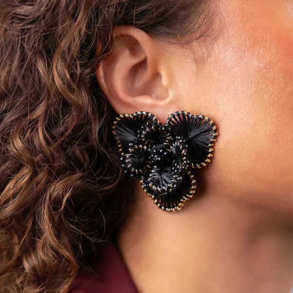 Boucles d'oreilles fleurs noires - Large