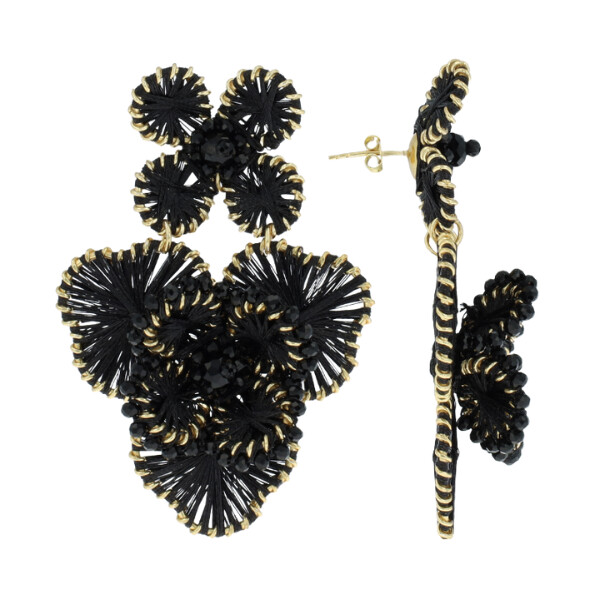 Boucles d'oreilles double fleurs noires - Large